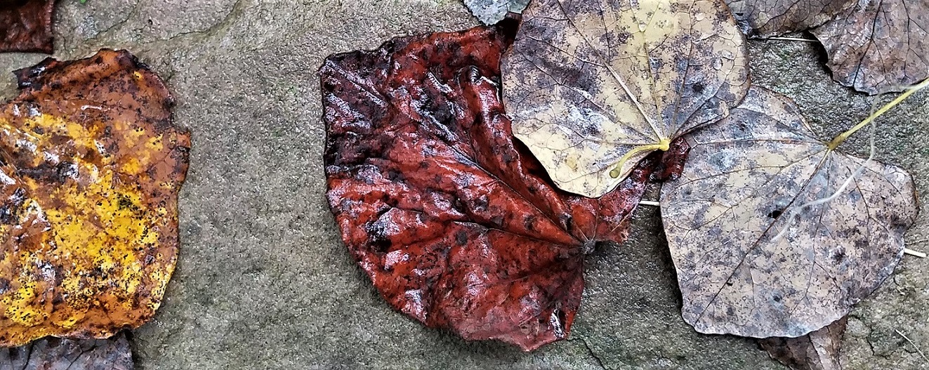 Deciding not to spy for little beings that might not be there, with a sigh, I stop just to listen. The thunderstorms have left a sprinkling of broken old ash tree branches here and there, and the freshly fallen leaves of the male persimmon tree seem plastered like glue to ground and my shoe soles. A gust of wind sends a rush of more loose leaves to the ground, and that lovely persimmon tree stands almost naked while the others are still properly attired.