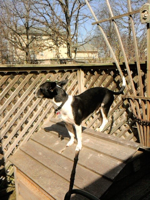 little rascal came up the long ramp onto the deck and disappeared into his doghouse